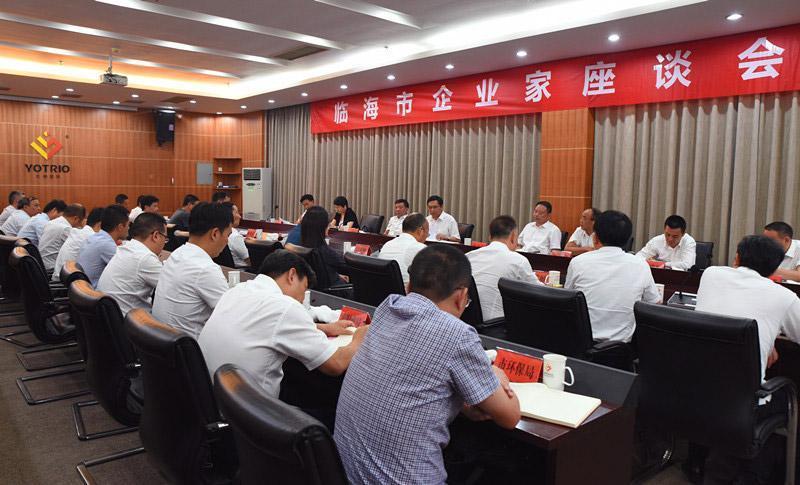 本報訊(記者 杜雯影 謝希)9月28日,臨海市企業家座談會在集團第二會議室召開。臺州市委常委、臨海市委書記蔡永波,市委副書記、市長梅式苗,市人大常委會主任朱堅國,市政協主席張招金,市委常委、組織部長邱蓉,市委常委、常務副市長蔡建軍,市委常委、浙江頭門港經濟開發區黨工委副書記、管委會常務副主任胡新民,副市長陳福清等四套班子領導出席座談會。
